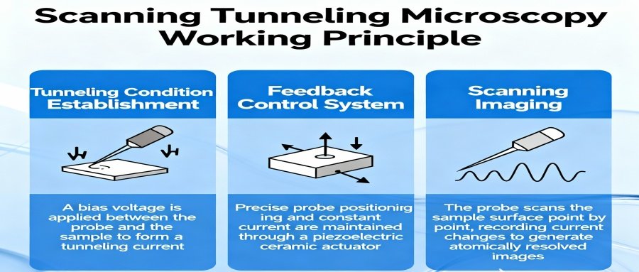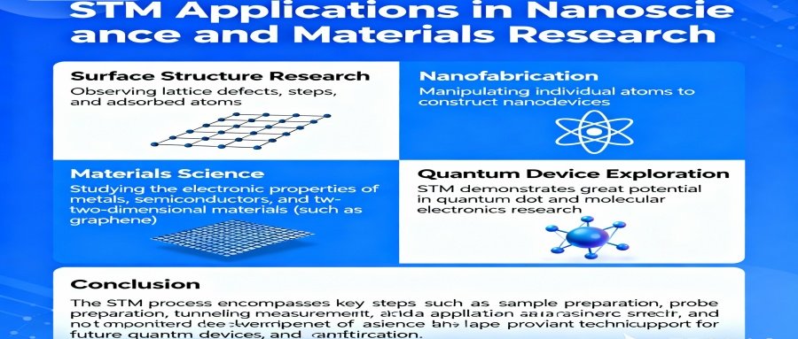 The STM process encompasses key steps such as sample preparation, probe preparation, tunneling measurement, and data analysis. Its application in nanoscience and materials research not only promotes the development of basic science but also provides important technical support for future quantum devices and nanofabrication.